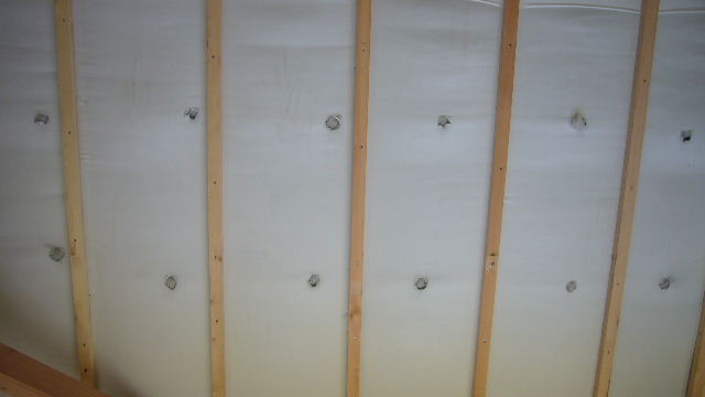 施工方法は、壁に開けた穴からホースで吹き込んでいくスタイル。